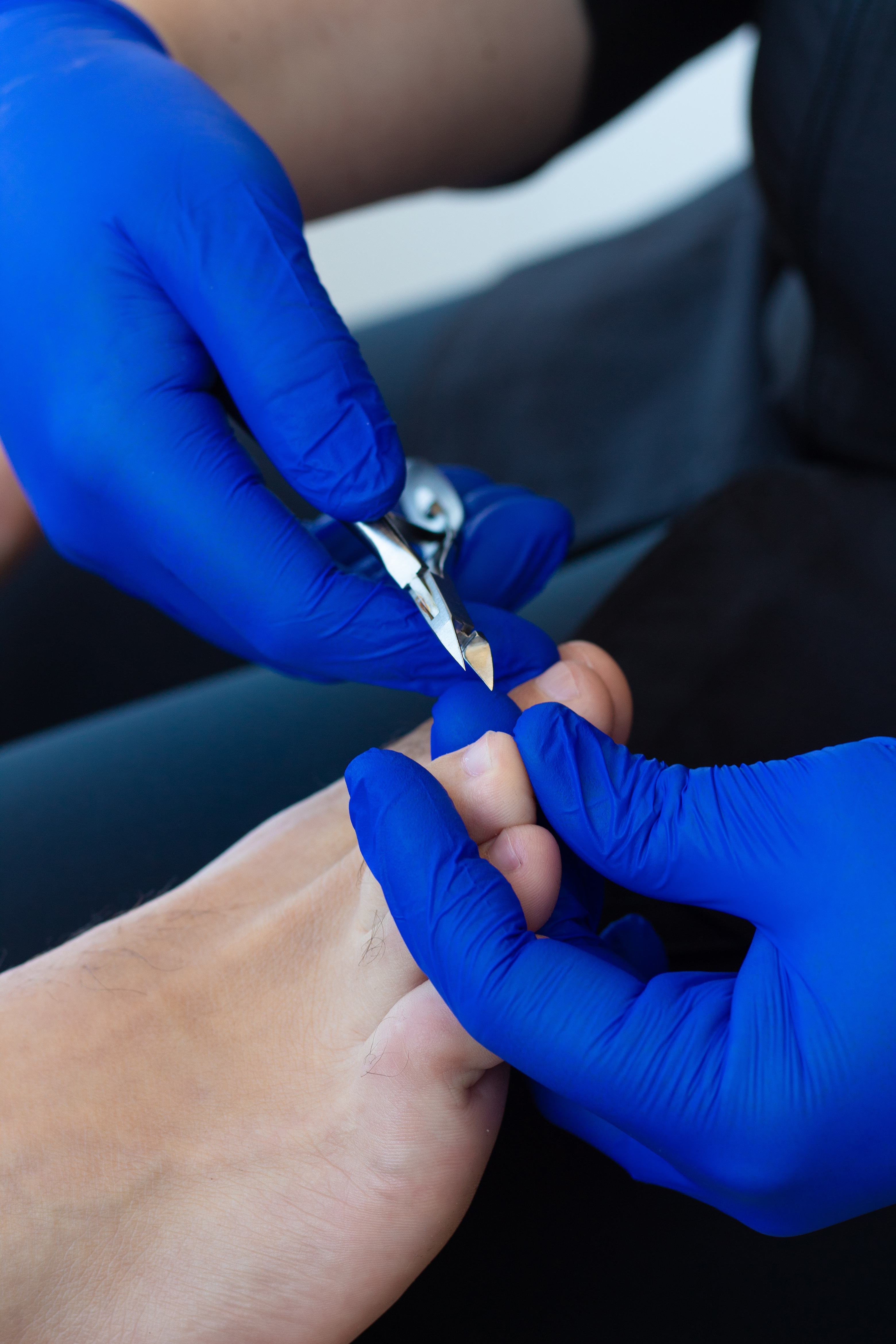 Le traitement des principaux problèmes dermatologiques au niveau des pieds s'effectue en clinique : cors plantaires, callosités, fissures, ongles incarnés, ongles épais, mycose des ongles (onychomycose) et plusieurs autres problématiques de la peau ou des ongles. Les verrues plantaires sont également traitées en clinique.